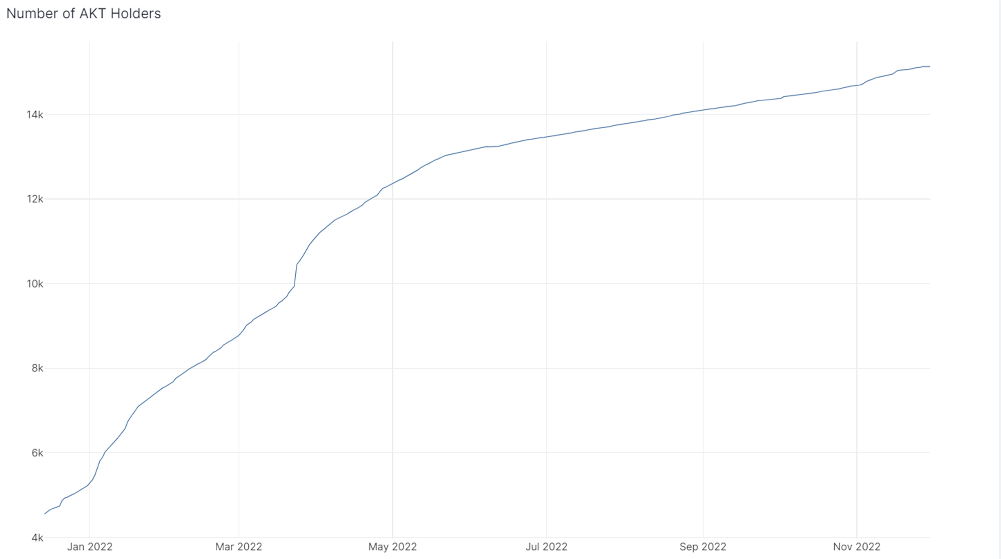 Tin tốt là số lượng AKT Holders trên Osmosis vẫn đang trên đà tăng lên, hiện tại đã đạt đến con số 15,1K vào cuối tháng 11 năm 2022.