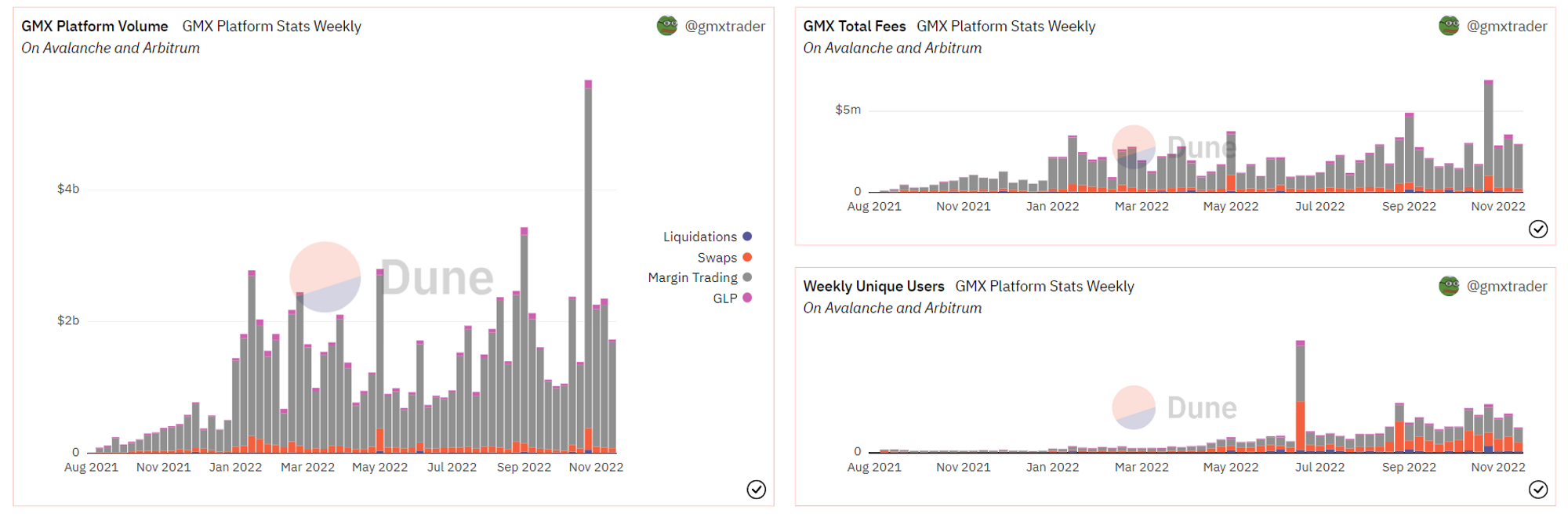 To be specific, looking at trading volume, fees and weekly unique users on GMX, we can see that there was also a large uptrend during the same period. Nevertheless, it seems that Carbon fails to retain users as volume has almost disappeared since December, while that of GMX only fell marginally.