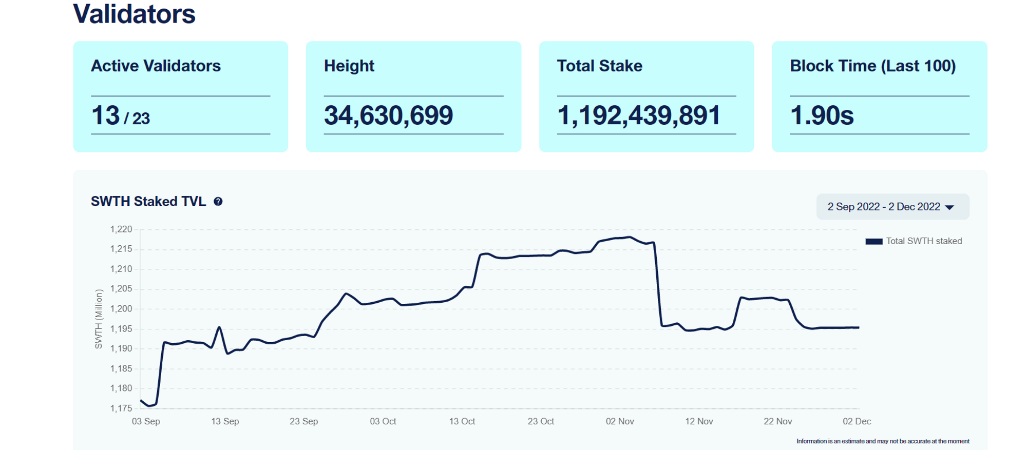 Another major concern is the low number of active validators (13 out of 23) and a large number of SWTH was unstaked on the first week of November.