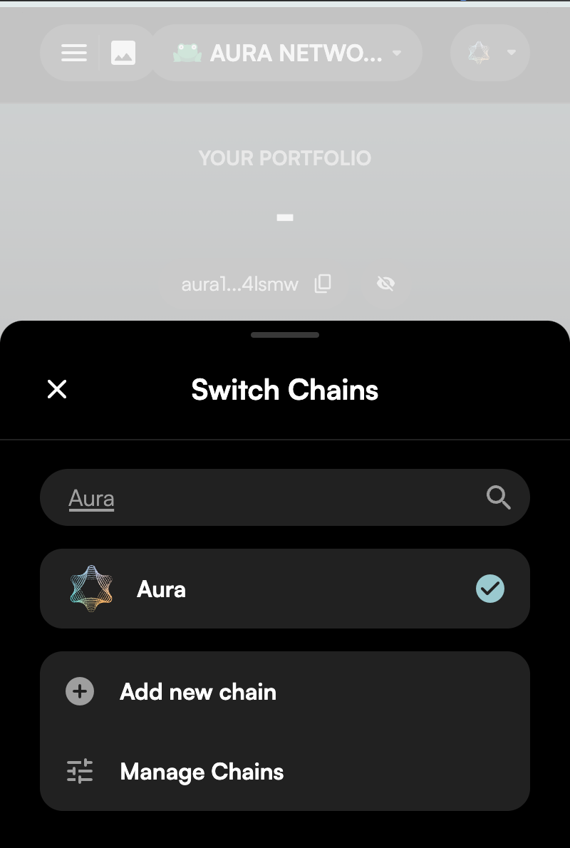 - Step 3: Click on the Networks icon located at the bottom right of the screen and search for Aura to switch to the Aura Chain.