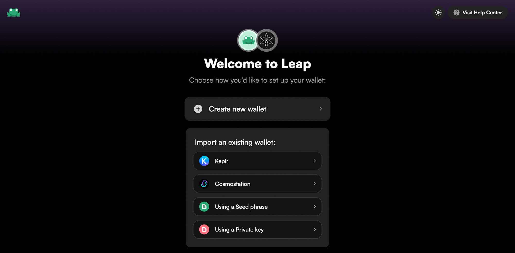 To get started, download the Leap Cosmos Wallet for the browser, then you are able to create an account with Leap by these steps below: