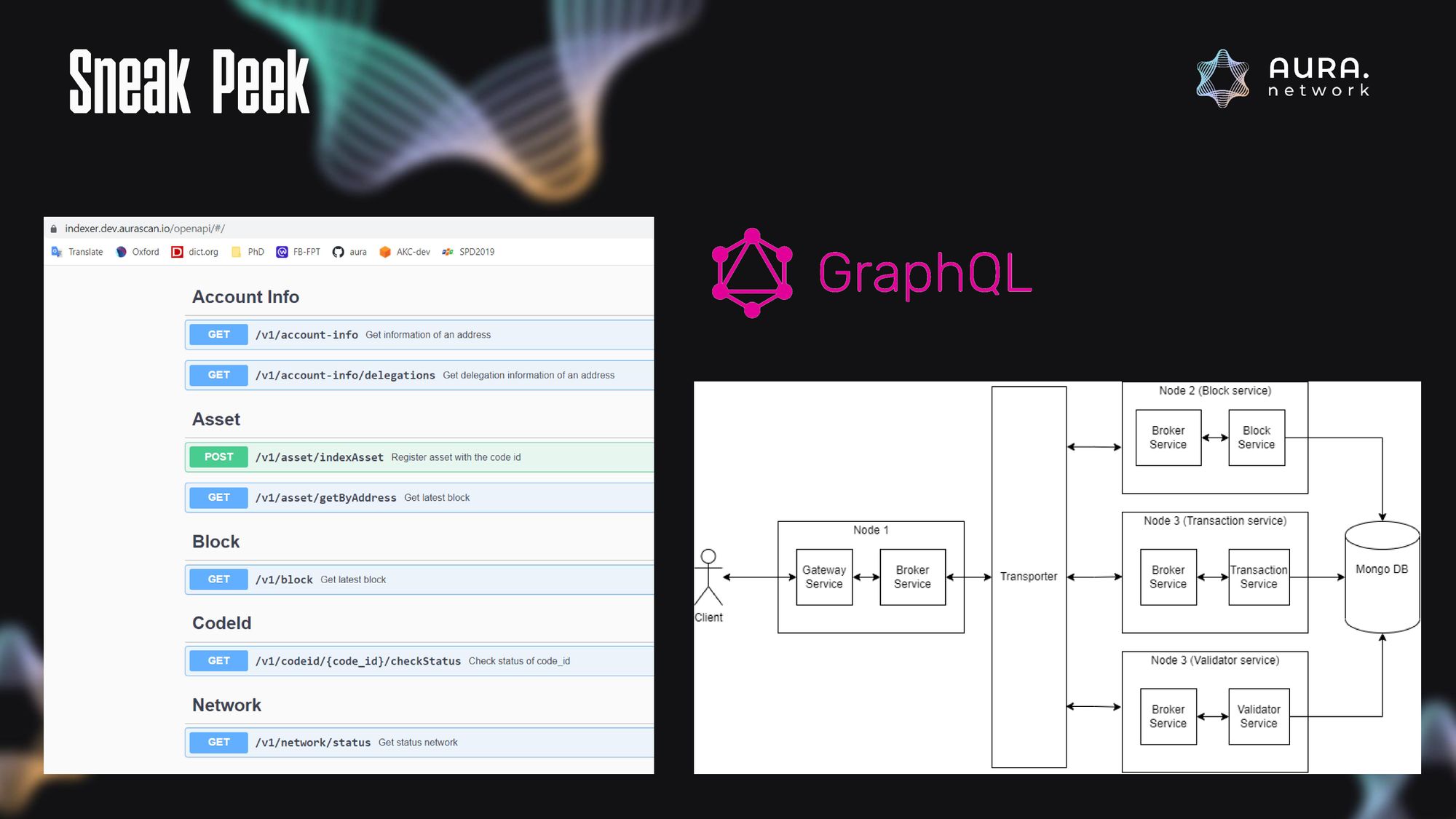 We will also build a graphQL server on these tools. You can write GraphQL and query everything. Now it's in the Alpha version. It is already used for Aurascan. In Aurascan, it is already using Aura indexer. It will take a little more time to support Osmosis and Cosmos Hub and a lot of testing.