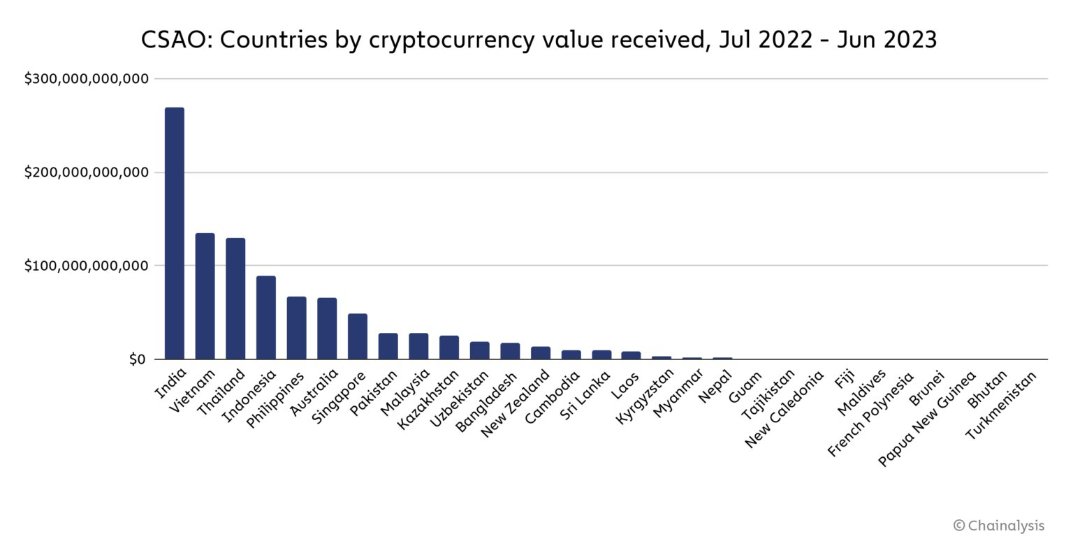 However, the true champions in grassroots cryptocurrency adoption emerge from Central and Southern Asia, including Oceania. Nations like India, Vietnam, the Philippines, Indonesia, Pakistan, and Thailand are leading this movement. Factors like high inflation rates, heavy reliance on migrant remittances, and the potential for better ROIs drive this surge. These countries have enthusiastically embraced blockchain technology and cryptocurrencies due to their freedom from legacy financial systems.